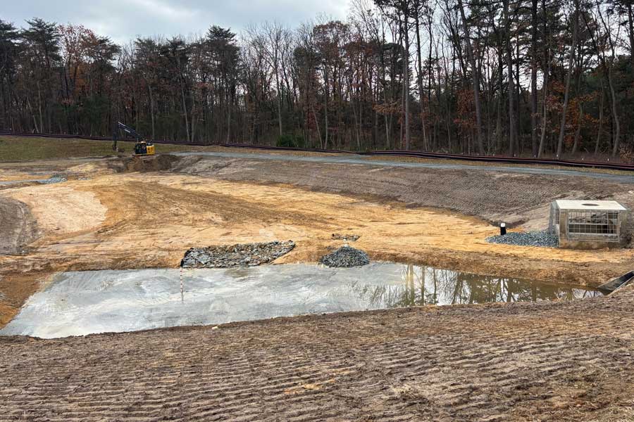 The pond conversion at The Highlands transforms the temporary sediment basin into a permanent stormwater management system, enhancing the development’s approach to environmental responsibility.
