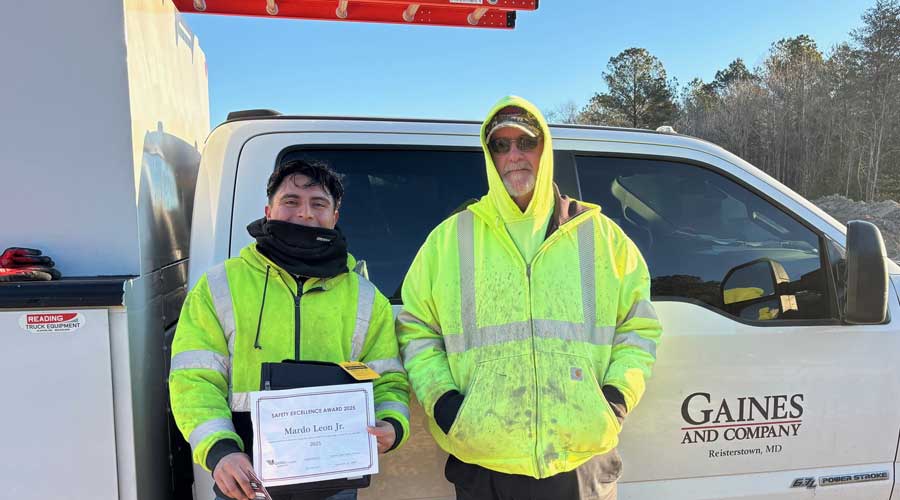 Gaines and Company is proud of its groundbreaking safety excellence program. In both its Maryland and North Carolina divisions, Safety Excellence Achievement Awards are given on a quarterly basis to employees who go above and beyond in their dedication to safety. All quarterly awardees are eligible for the Year-End Safety Excellence Award recognition.