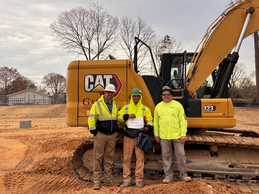 Safety Director Dominic Pope (left) and Foreman Alvaro Leon (right) present Benito Guzman (center) with Maryland’s Q1 Safety Excellence Achievement Award for being a positive safety leader.