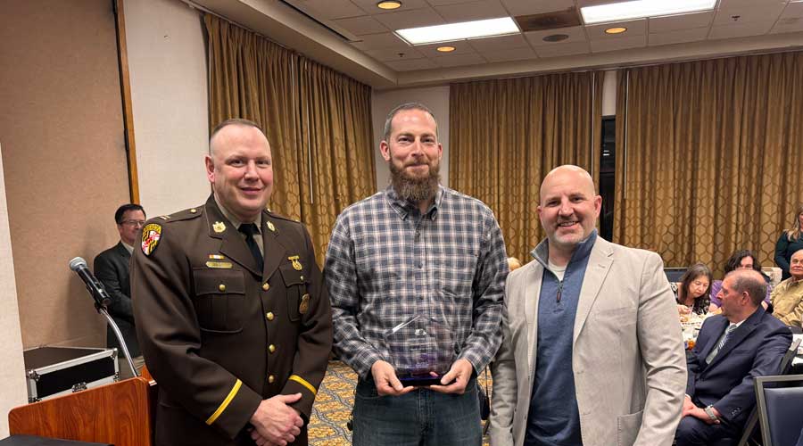 Steve was presented his award by Maryland State Police Trooper Derrick Peck (left) and MMTA Chairman of the Board Scott Pauchnik (right).